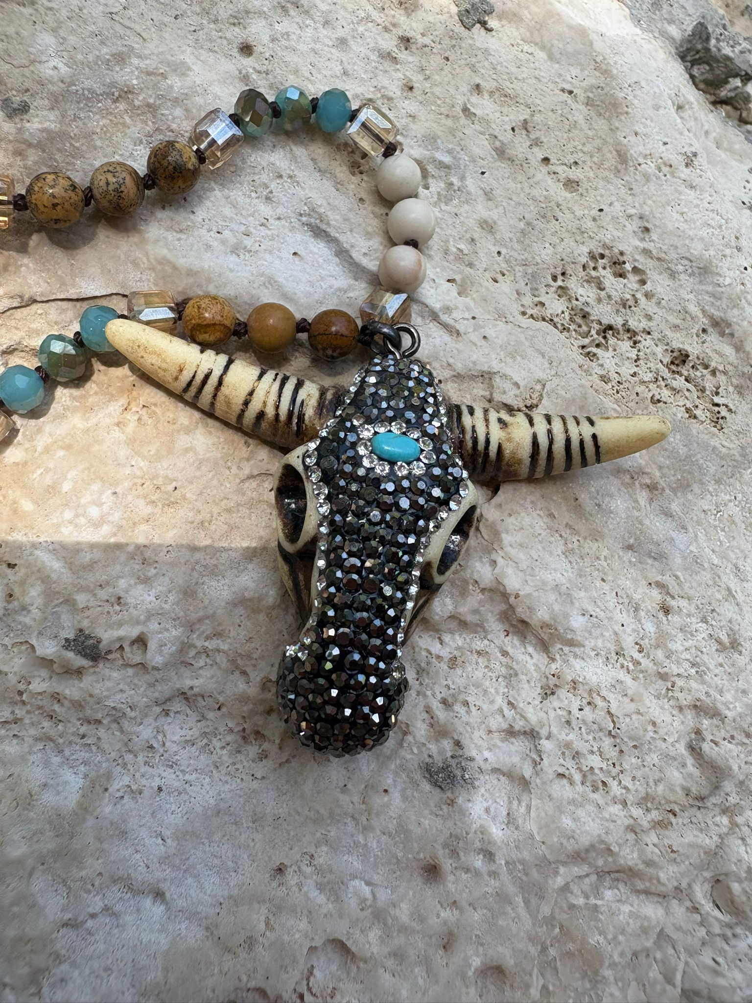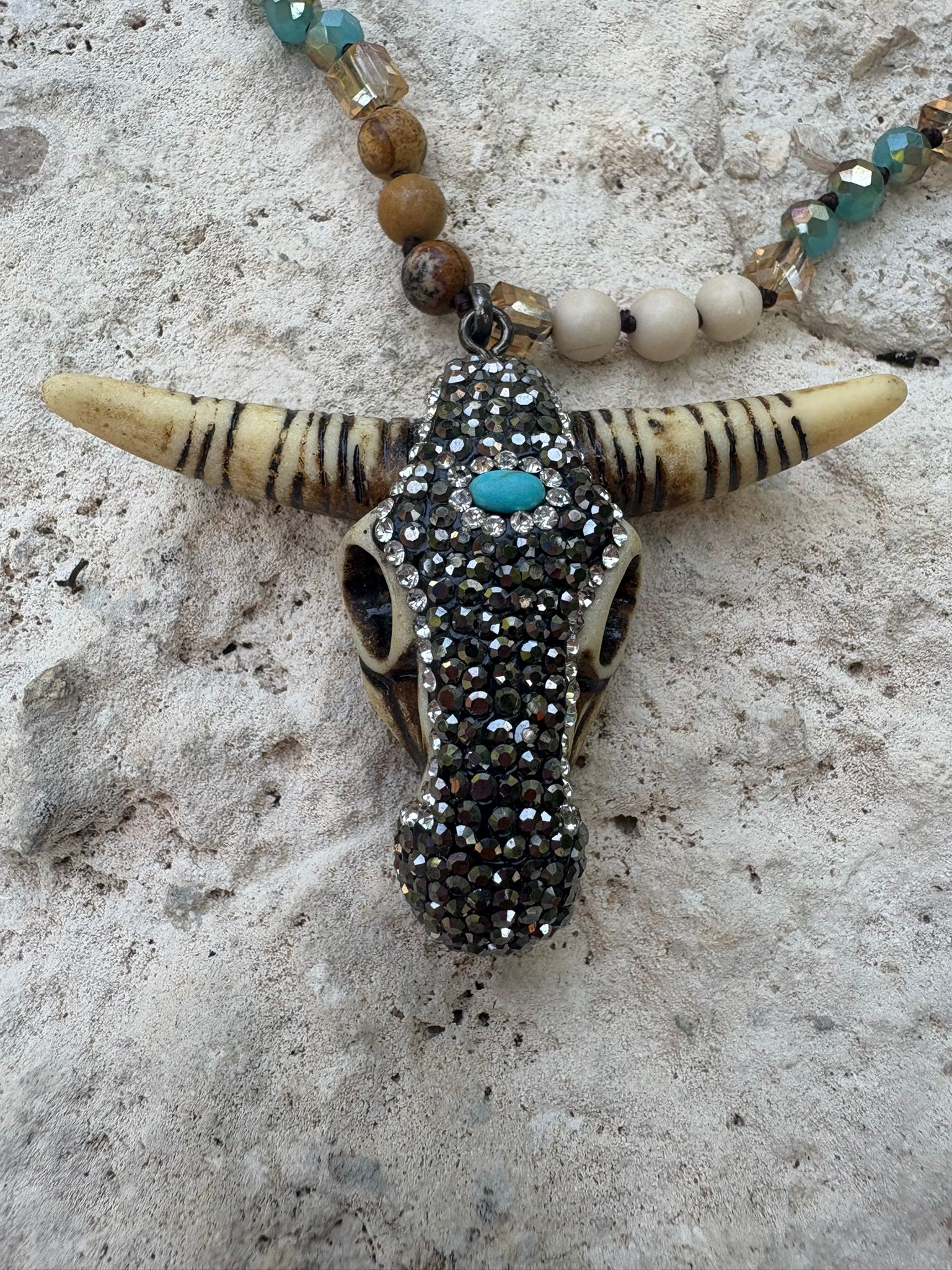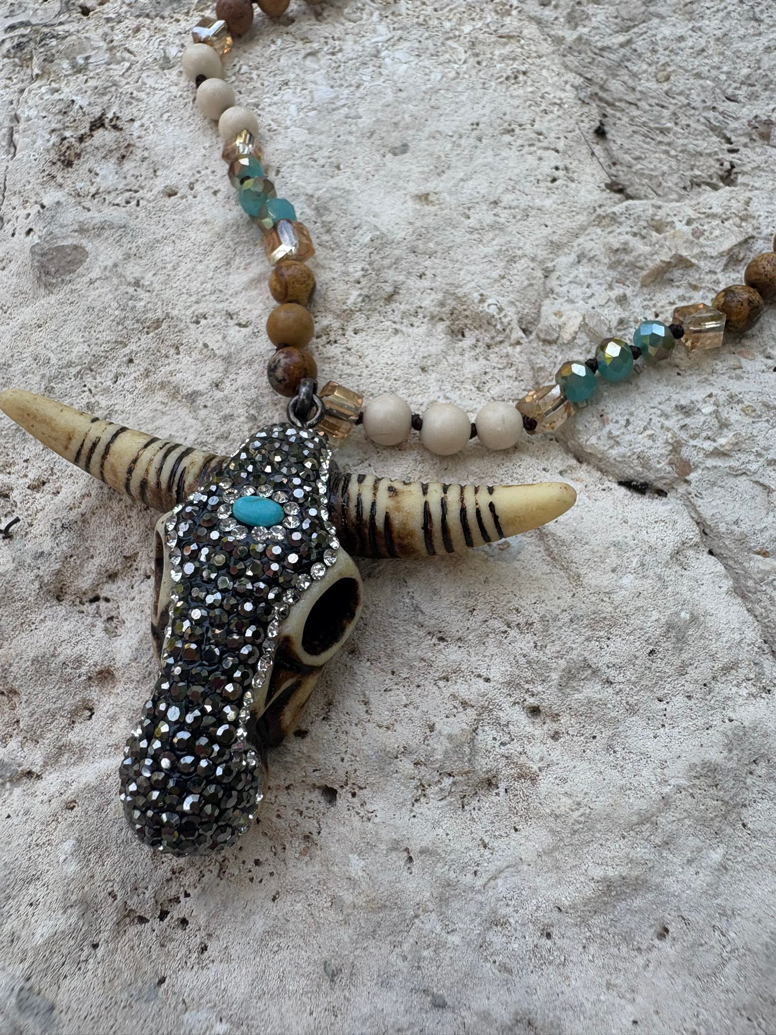 Collar largo de Cuernos con piedras , super bonito